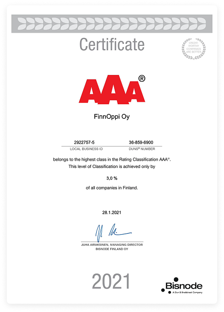 Accredited and recognized within Finland's national education export program